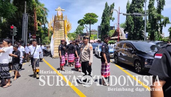 Gianyar, Surya Indonesia.net – Pengamanan kegiatan upacara pelebon Ida Bhagawan Blibar/Anak Agung Gde Beratha, S.H., mantan Bupati Gianyar, dilaksanakan secara terpadu oleh personel gabungan Polres Gianyar dan Polsek Gianyar di kawasan Puri Agung Gianyar, Sabtu (7/3/2026). Kegiatan adat dan keagamaan umat Hindu tersebut dihadiri oleh berbagai tokoh penting serta ribuan masyarakat yang turut mengikuti rangkaian prosesi dengan khidmat.