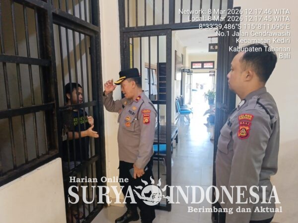 Hari Minggu, 8-3-2026 pukul 12.30 Wita, Kapolsek Kediri Kompol Putu Budiawan bersama Pawas dan personil yang sedang melaksanakan tugas penjagaan di Mako Polsek Kediri melaksanakan sidak terhadap tahanan yang ada di Polsek Kediri yang berjumlah 1(satu) orang yang terdiri dari 1 laki dan ruang tahanan terutama barang-barang yang dapat membehayakan baik tahanan maupun petugas.