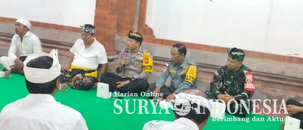 Denpasar, Surya Indonesia.net – Dalam rangka memastikan rangkaian kegiatan keagamaan menjelang Hari Raya Nyepi berjalan aman dan lancar, Bhabinkamtibmas Desa Sumerta Kelod Aiptu Kadek Rudi Marthana bersama Babinsa Sertu I Wayan Mulyastra menghadiri rapat koordinasi persiapan Upacara Melasti Desa Adat Tanjung Bungkak yang berlangsung pada Minggu (08/03/2026) pukul 20.00 WITA di Jaba Pura Desa, Desa Adat Tanjung Bungkak.