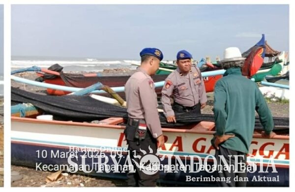 Tabanan, Surya Indonesia.net – Personel Satuan Polairud Polres Tabanan melaksanakan kegiatan patroli pesisir dan sambang di kawasan Pantai Yeh Gangga, Selasa (10/3/2026) pukul 10.00 Wita. Kegiatan patroli jalan kaki ini dipimpin oleh Ipda Nyoman Awantara, S.H., bersama Aipda I Gede Bayu Bimantara, S.H., dan Bripka Agus Setiawan guna memantau aktivitas masyarakat maupun wisatawan yang berkunjung ke kawasan pantai tersebut.