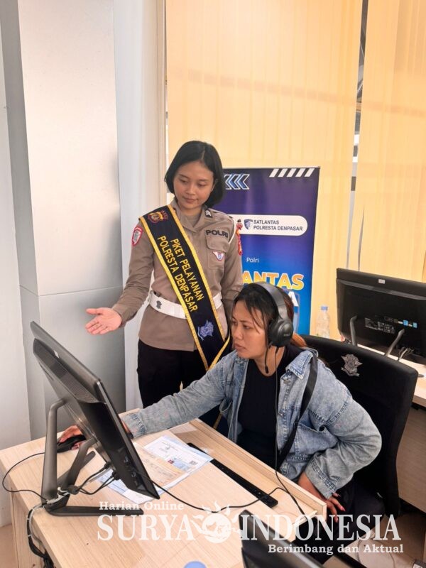 Denpasar , Surya Indonesia.net – Pelayanan pembuatan dan perpanjangan Surat Izin Mengemudi (SIM) di Satuan Penyelenggara Administrasi SIM (Satpas) Polresta Denpasar terus berjalan dengan optimal dan tertib. Petugas memberikan pendampingan kepada para pemohon SIM yang sedang mengikuti tahapan ujian teori berbasis komputer, sehingga proses pelayanan berlangsung lancar dan nyaman.