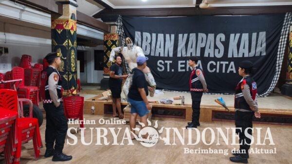 Denpasar, Surya Indonesia.net – Kehadiran Polri di tengah aktivitas masyarakat menjelang Hari Raya Nyepi terus dilakukan dengan pendekatan humanis. Personel Polda Bali yang terlibat dalam Kegiatan Rutin Yang Ditingkatkan (KRYD) menyambangi para pemuda yang sedang membuat ogoh-ogoh di Banjar Abian Kapas Kaja, Denpasar, Senin (9/3/2026) malam.