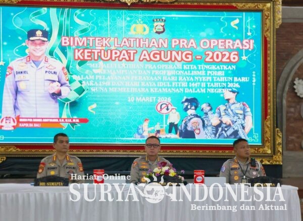 Bali, Surya Indonesia.net – Meningkatkan kemampuan dan Profesionalisme dalam pelayanan perayaan hari raya Nyepi Caka 1948 dan Idul Fitri 1447 H, Kepolisian Daerah Bali (Polda Bali) menggelar latihan pra Operasi Ketupat Agung-2026 bagi personelnya di Gedung Presisi Polda Bali, Selasa (10/3).