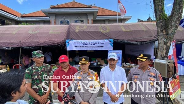 Mangupura, Surya Indonesia.net – Polres Badung menggelar kegiatan Bazar Murah dalam rangka Gerakan Pangan Murah (GPM) Polri Serentak yang dilaksanakan di sebelah timur Pasar Mengwi, Kecamatan Mengwi, Kabupaten Badung, Jumat (13/3/2026). Kegiatan ini merupakan bagian dari program nasional yang dilaksanakan serentak oleh jajaran Polri di seluruh Indonesia sebagai bentuk dukungan terhadap upaya pemerintah dalam menjaga stabilitas harga pangan serta membantu masyarakat memperoleh kebutuhan pokok dengan harga yang lebih terjangkau.