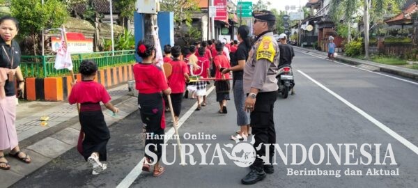 Denpasar, Surya Indonesia.net – Personel Polsek Kuta Selatan melaksanakan kegiatan cooling system dalam rangka pengamanan parade ogoh-ogoh mini yang diselenggarakan oleh siswa SD 1 Ungasan, Kamis (12/3/2026) pukul 08.00 WITA. Kegiatan berlangsung di wilayah Banjar Kauh, Desa Ungasan, Kecamatan Kuta Selatan, Kabupaten Badung.