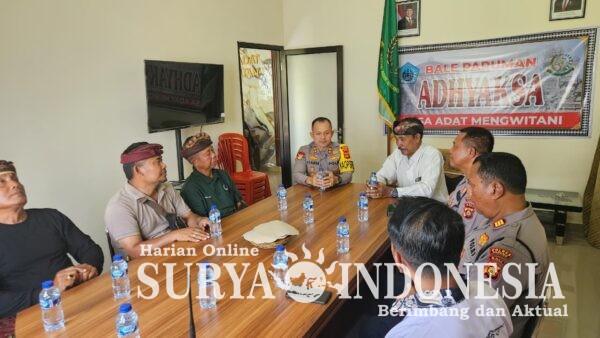 Mangupura, Surya Indonesia.net – Kapolres Badung melaksanakan kegiatan silaturahmi bersama tokoh dan pengurus Desa Adat Mengwitani sebagai upaya mempererat sinergi antara kepolisian dan masyarakat adat dalam menjaga keamanan dan ketertiban masyarakat (kamtibmas). Kegiatan tersebut bertujuan memperkuat komunikasi, koordinasi, serta kolaborasi antara Polri dan desa adat agar situasi wilayah tetap kondusif. Jumat (13/3/26)