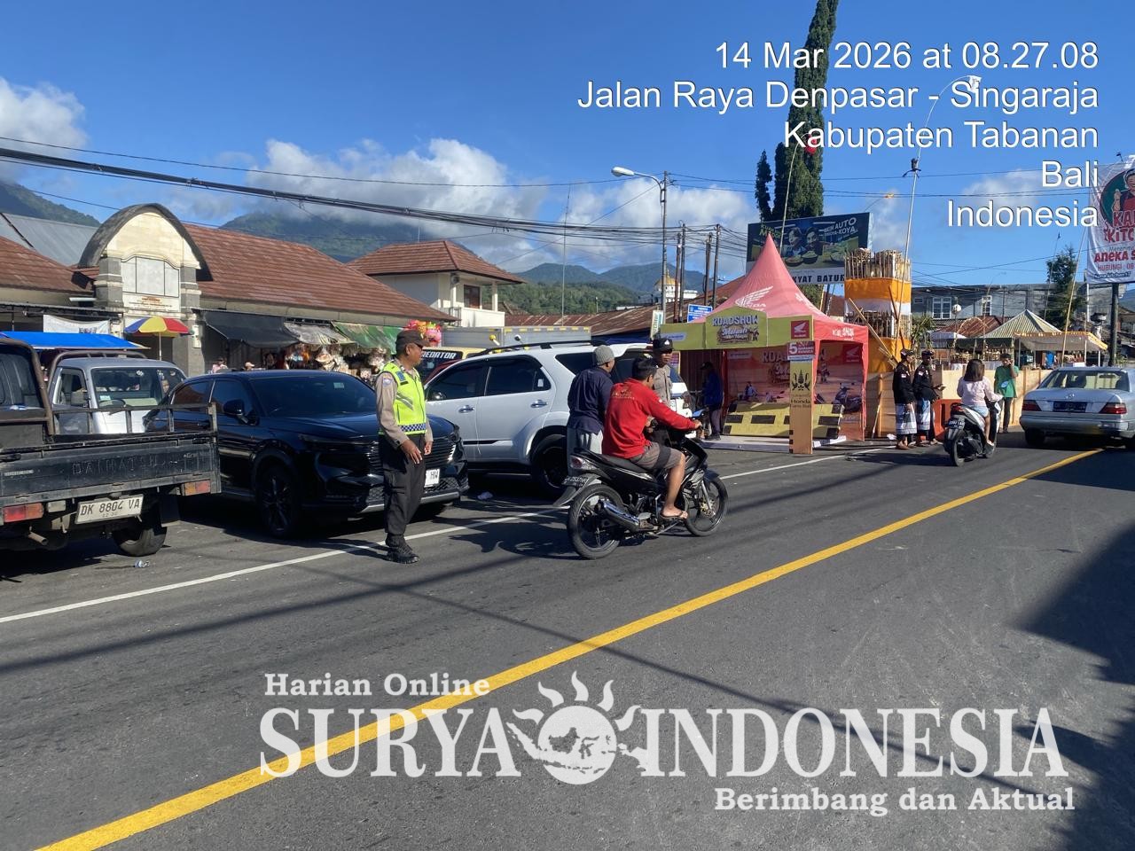Tabanan, Surya Indonesia.net – Polsek Baturiti melaksanakan kegiatan strong point pagi pada hari Sabtu, 14 Maret 2026 mulai pukul 10.30 Wita bertempat di areal Pasar Baturiti, Kecamatan Baturiti, Kabupaten Tabanan. Kegiatan ini dilaksanakan sebagai bentuk pelayanan kepada masyarakat dalam menjaga kelancaran arus lalu lintas di kawasan yang memiliki aktivitas masyarakat cukup tinggi.