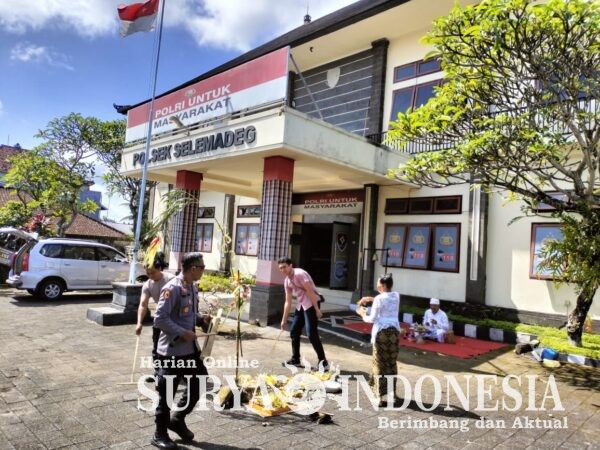 Tabanan , Surya Indonesia.net – Polsek Selemadeg. Menjelang Hari Raya Nyepi Tahun Baru Caka 1948, Kepolisian Sektor Selemadeg melaksanakan upacara Pecaruan Tilem Sasih Kasanga di lingkungan Mapolsek dan Pura Padmasana Lingga Amerta Jati, Sabtu (14/3/2026). Ritual suci yang dipuput oleh Jro Mangku Aiptu I Wayan Mudastra ini dihadiri langsung oleh Wakapolsek beserta personel dengan penuh khidmat. Kegiatan yang berlangsung mulai pukul 09.00 WITA hingga 11.00 WITA ini merupakan bagian dari rangkaian Bhuta Yadnya guna memohon Tirta Wasupada.