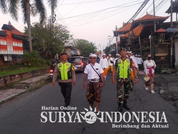 Gianyar , Surya Indonesia.net – Personel Polsek Gianyar melaksanakan pengamanan kegiatan Upacara Adat Melasti Desa Adat Serongga menuju Pantai Lebih, Kecamatan Gianyar, pada Minggu (15/3/2026) pagi. Pengamanan dilakukan untuk memastikan rangkaian upacara adat yang diikuti ribuan krama tersebut dapat berlangsung dengan aman, tertib, dan lancar.