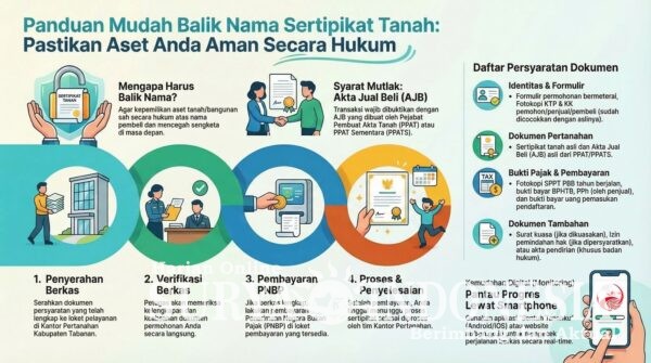 Tabanan, Surya Indonesia.net – Kantor Pertanahan (Kantah) Kabupaten Tabanan mengimbau seluruh masyarakat untuk segera mengurus proses Balik Nama (Peralihan Hak) Sertipikat Tanah setelah melakukan transaksi jual beli. Hal ini penting dilakukan agar kepemilikan aset tanah dan/atau bangunan sah secara hukum tercatat atas nama pembeli yang baru, guna mencegah potensi sengketa pertanahan di masa depan.