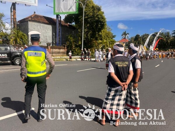 Sepanjang perjalanan menuju lokasi upacara, personel Polres Kawasan Bandara I Gusti Ngurah Rai disiagakan untuk memastikan kegiatan berjalan dengan aman dan tertib, mengingat jalur yang dilalui juga merupakan akses utama menuju Bandara I Gusti Ngurah Rai.