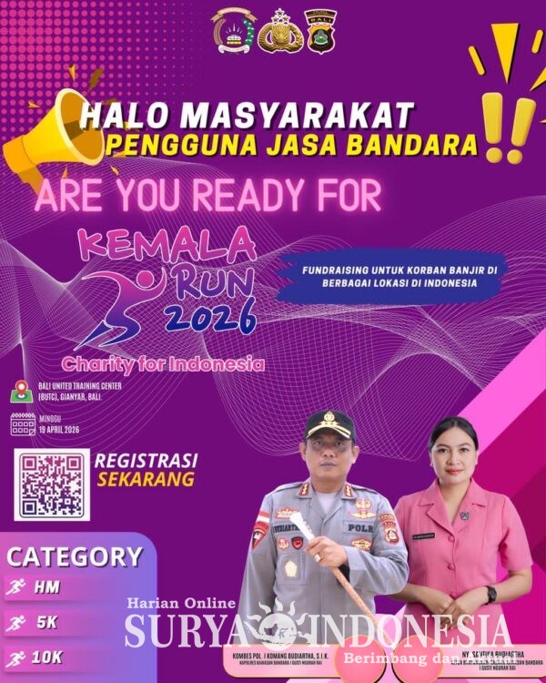 “Melalui sosialisasi ini kami ingin mengajak masyarakat, khususnya para pengguna jasa Bandara Ngurah Rai, untuk ikut meramaikan sekaligus berpartisipasi dalam kegiatan Kemala Run 2026 yang tidak hanya menyehatkan melalui olahraga, tetapi juga memiliki tujuan kemanusiaan untuk membantu saudara-saudara kita yang terdampak bencana banjir,” ujar Ipda I Gede Suka Artana.
