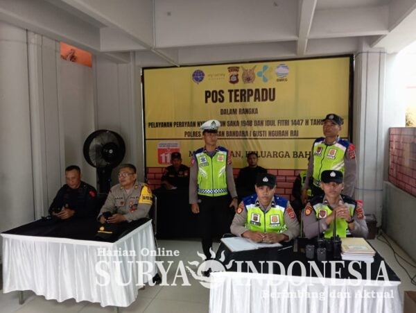 Badung , Surya Indonesia.net – Polres Kawasan Bandara I Gusti Ngurah Rai dalam rangka Operasi Ketupat Agung 2026 melaksanakan kegiatan siaga di Posko Terpadu Domestik Bandara I Gusti Ngurah Rai dengan berkolaborasi bersama stakeholder serta instansi terkait dalam rangka mendukung pengamanan dan pelayanan kepada masyarakat, Senin (16/3/2026).