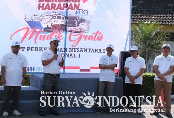 Tanjung Morawa,Surya Indonesia. Net – Region Head PT Perkebunan Nusantara I Regional 1, Wispramono Budiman bersama Operation Head Ganda Wiatmaja melepas keberangkatan tiga unit bus mudik gratis bagi masyarakat dan keluarga besar PTPN yang akan pulang ke kampung halaman menjelang Hari Raya Idulfitri, Selasa (17/3).