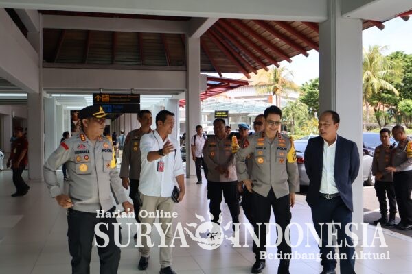Badung, Surya Indonesia.net – Kapolres Kawasan Bandara I Gusti Ngurah Rai, Kombes Pol. I Komang Budiartha, S.I.K., mendampingi Kapolda Bali, Irjen Pol. Daniel Adityajaya, S.H., S.I.K., M.Si., dalam kunjungan ke Posko Terpadu Operasi Ketupat Agung 2026 yang berlokasi di Terminal Domestik Bandara Internasional I Gusti Ngurah Rai, Senin (23/3/2026). Kunjungan ini dilakukan dalam rangka memastikan kesiapan personel serta sarana dan prasarana pendukung pengamanan Idul Fitri 1447 Hijriah.