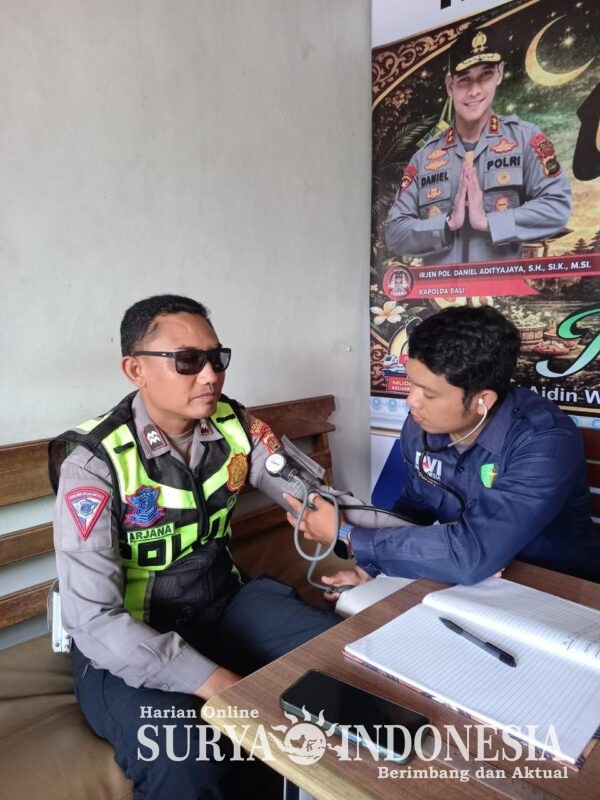 Kegiatan yang berlangsung pada Selasa (24/3) tersebut menyasar personel yang bertugas di sejumlah titik, yakni Mako Polres Badung, Posyan Terminal Tipe A Mengwi, serta Pospam Mangupura. Dengan melibatkan dua personel Sidokkes, kegiatan diawali dengan apel kemudian dilanjutkan pemeriksaan kesehatan berupa pengecekan tekanan darah serta pemberian vitamin guna menjaga stamina anggota di lapangan.
