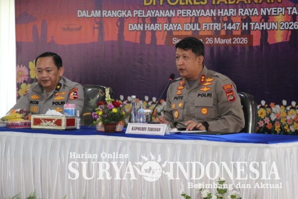 Tabanan, Surya Indonesia.net – Kapolres Tabanan menerima kunjungan Tim Pengawasan Operasi (Wasops) Itwasum Polri dalam rangka evaluasi pelaksanaan Operasi Ketupat Agung 2026, Kamis (26/3/2026), bertempat di Aula Wisnu Hartono Polres Tabanan.