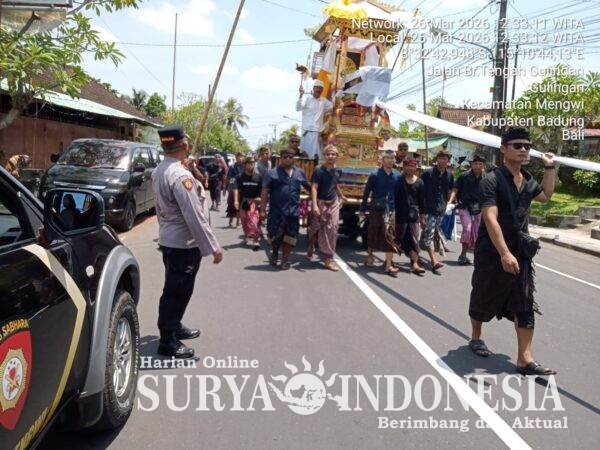 Mengwi, Surya Indonesia.net – Dalam rangka memberikan pelayanan serta menjamin rasa aman kepada masyarakat, Kapolsek Mengwi Kompol Anak Agung Gede Rai Darmayasa, S.H.,M.H., turun langsung memantau dan mengamankan jalannya kegiatan upacara pengabenan yang dilaksanakan di wilayah hukum Polsek Mengwi. Kamis (26/3/2026)