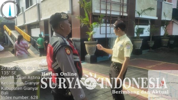 Gianyar, Surya Indonesia.net – Dalam rangka menjaga situasi keamanan dan ketertiban masyarakat (kamtibmas), personel Sat Samapta Polres Gianyar melaksanakan kegiatan patroli dialogis di kawasan Kantor Pengadilan Negeri Gianyar pada Jumat, 27 Maret 2026, pukul 09.20 Wita.
