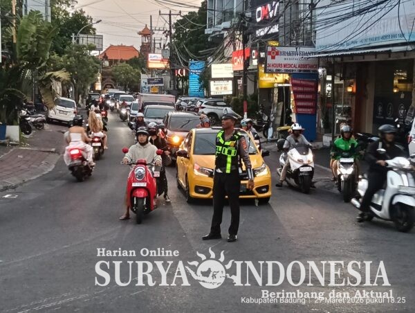 Kuta Utara, Surya Indonesia.net – Personel Unit Lalu Lintas Polsek Kuta Utara kembali menunjukkan dedikasi mereka dalam menjaga keamanan dan kelancaran lalu lintas di daerah hukum Polsek Kuta Utara, Badung, Bali. Kali ini, mereka terlihat sibuk mengatur lalu lintas dan membantu menyeberangkan pejalan kaki di Simpang Batu Belig, Kelurahan Kerobokan Kelod yang mana merupakan sebuah area yang rawan kemacetan, terutama pada jam-jam sibuk. Jumat (27/3/2026) pukul 18.00 Wita.