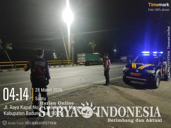 Mengwi , Surya Indonesia.net – Guna menjaga situasi kamtibmas tetap aman dan kondusif, Polsek Mengwi meningkatkan patroli malam dengan menyasar jalur Sempidi – Kapal yang kerap dijadikan lokasi balapan liar, Sabtu (28/3/2026) dini hari.