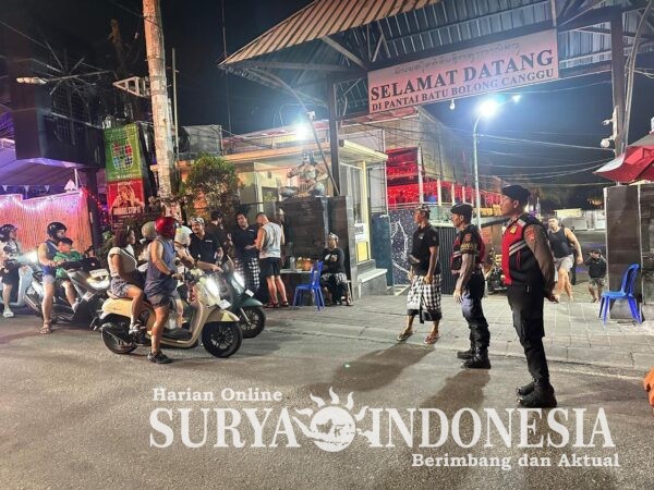 Kuta Utara, Surya Indonesia.net – Polsek Kuta Utara terus melakukan patroli biru di kawasan wisata pantai Batu Bolong, Desa Canggu, Kecamatan Kuta Utara, Badung untuk memberikan rasa aman kepada wisatawan. Kegiatan ini dilakukan dengan menyalakan lampu biru dan melakukan patroli di sekitar area wisata, terutama saat wisatawan menikmati waktu liburan atau meninggalkan tempat hiburan. Sabtu (28/3/2026) pukul 22.00 Wita