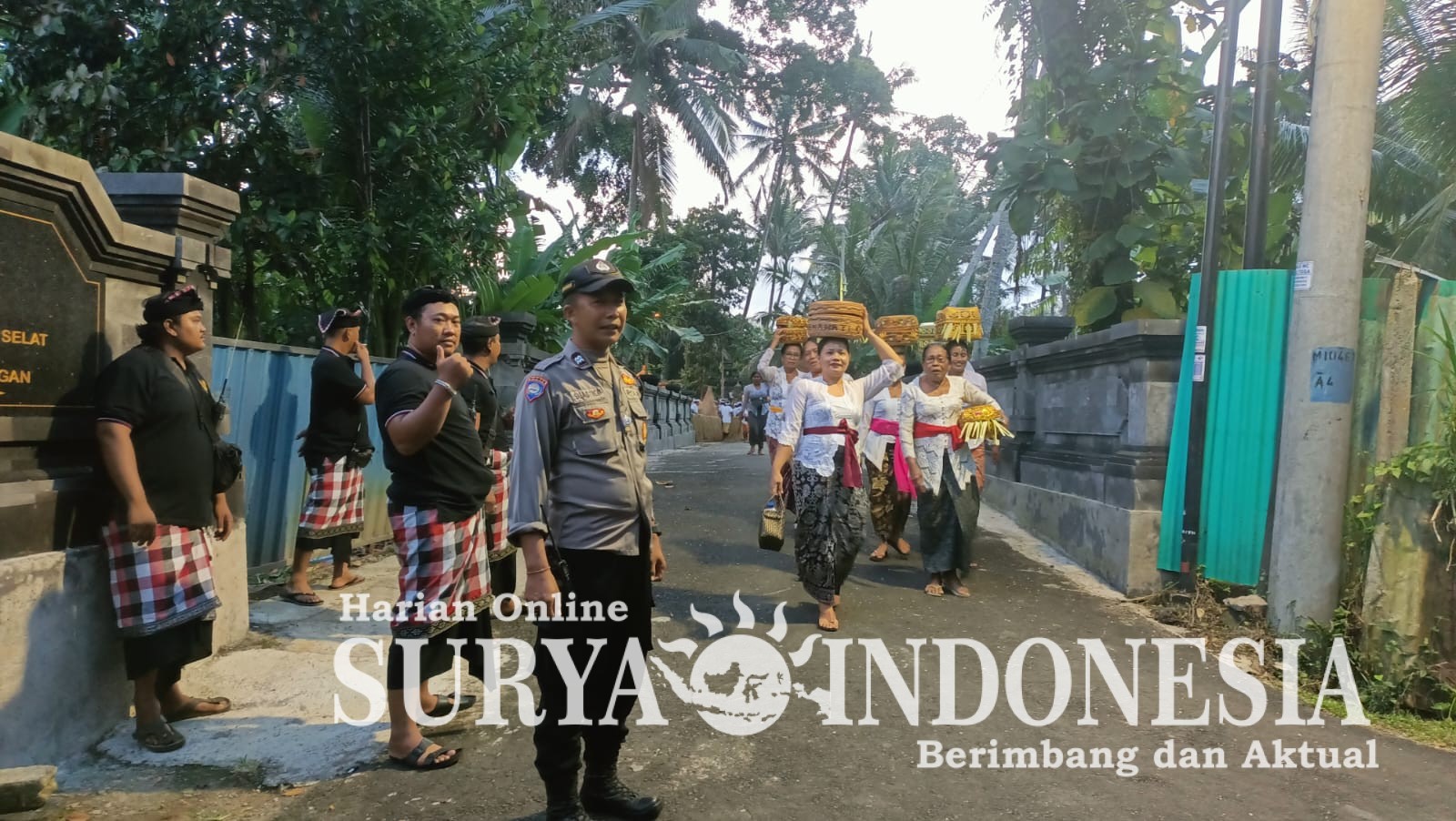 Hadir di Tengah Masyarakat, Bhabinkamtibmas Bersinergi dengan Pecalang Amankan Kegiatan Piodalan