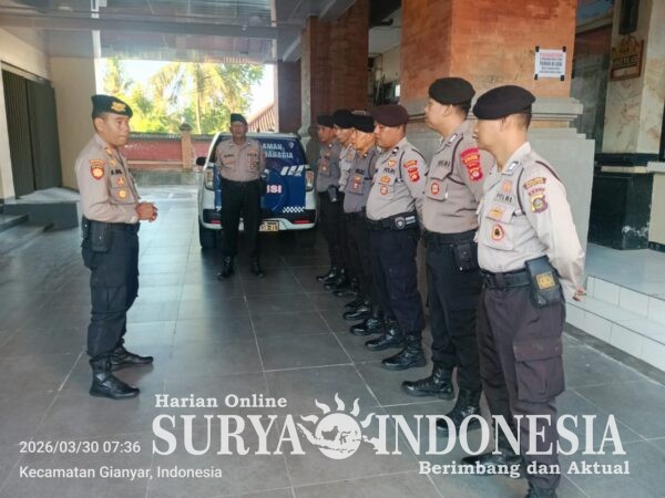 Gianyar, Surya Indonesia.net – Dalam rangka memastikan kesiapsiagaan dan kedisiplinan personel yang melaksanakan tugas pengamanan di objek vital, Kasat Pam Obvit Polres Gianyar AKP I Made Mulata melaksanakan arahan serta pengecekan terhadap personel Sat Pamobvit yang bertugas di sejumlah objek vital/perbankan, Senin (30/3/2026).