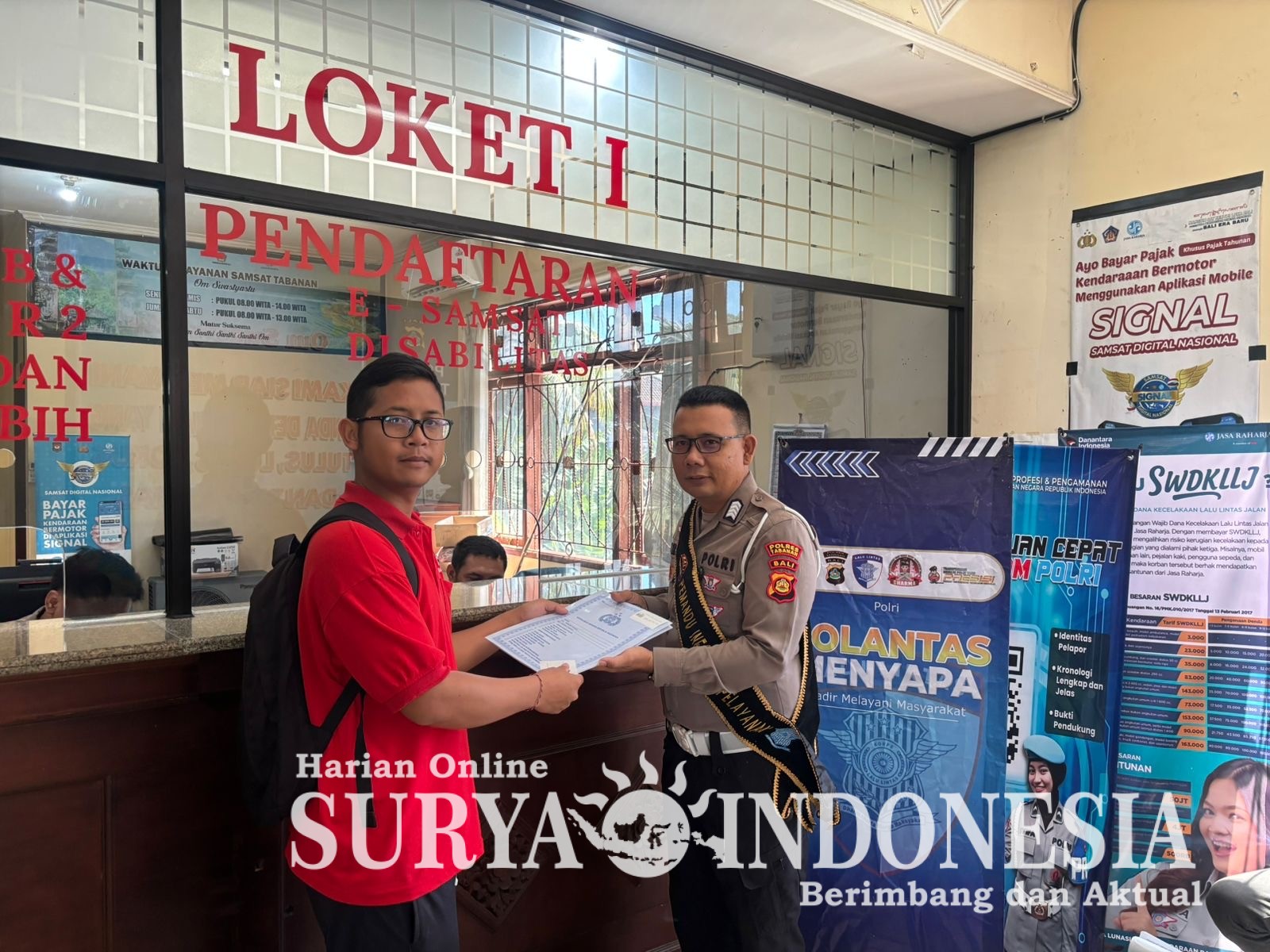 Tabanan, Surya Indonesia.net – Pelayanan pengesahan dan perpanjangan Surat Tanda Nomor Kendaraan (STNK) di Kantor Bersama Samsat Tabanan berlangsung dengan mekanisme yang tertata. Wajib pajak yang datang dilayani melalui tahapan pemeriksaan dokumen, validasi data, hingga proses pembayaran sesuai dengan prosedur yang berlaku.