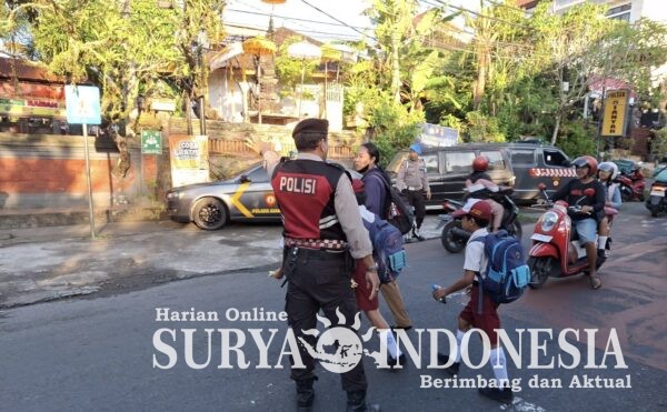 Gianyar, Surya Indonesia.net – Personel Polsek Gianyar melaksanakan kegiatan pengaturan arus lalu lintas (pos pagi) di depan SD Negeri 2 Gianyar, Jalan Ratna Desa Tegal Tugu Kecamatan Gianyar, pada Senin (30/3/2026) pagi. Kehadiran polisi di jam-jam sibuk tersebut bertujuan untuk memberikan rasa aman dan nyaman bagi masyarakat, khususnya para pelajar yang memulai aktivitas sekolah.