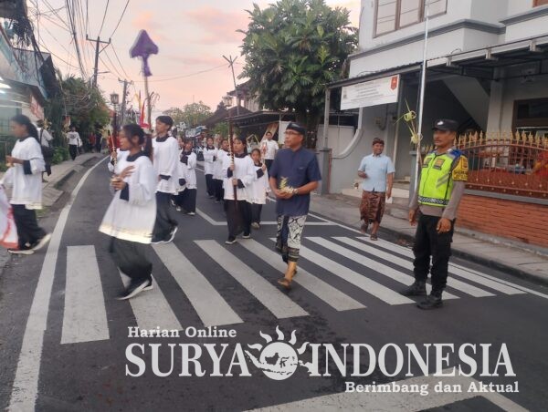Kuta Utara, Surya Indonesia.net – Kepolisian Sektor Kuta Utara melalui Bhabinkamtibmas melakukan pengamanan kegiatan Misa Minggu Palma di Gereja Tri Tunggal Maha Kudus Tuka, Banjar Tuka, Desa Dalung, Kecamatan Kuta Utara, Kabupaten Badung, Minggu (29/3/2026) pagi.