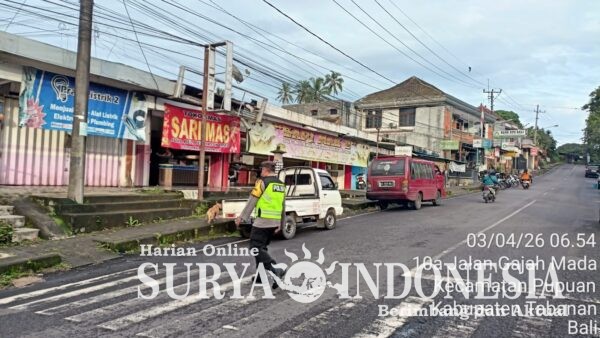 Polres Tabanan, Surya Indonesia.net – Polsek Pupuan, Jumat 03 April 2026 pukul 06.30 s/d 08.20 Wita, personel Polsek Pupuan melaksanakan kegiatan Strong Point dalam rangka pengaturan dan pemantauan arus lalu lintas di wilayah hukum Polsek Pupuan. Kegiatan ini dilaksanakan oleh dua personel yang bertugas di simpang Pasar/Terminal Pupuan sebagai bentuk pelayanan prima Polri kepada masyarakat.