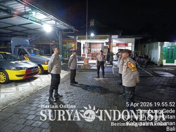 Polres Tabanan, Surya Indonesia.net – Polsek Kerambitan, Senin 06 April 2026; Anggota Piket Jaga Baru dan Piket Jaga Lama Polsek Kerambitan dipimpin oleh Perwira Pengawas (Pawas) Iptu I Kadek Romiawan, S.H melaksanakan acara serah terima tugas jaga bertempat di Halaman Mako Polsek Kerambitan.