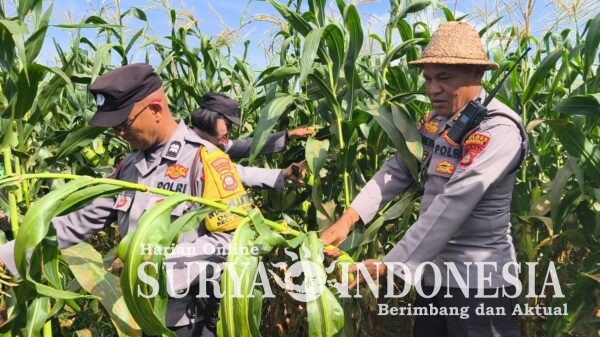 BLAHBATUH, Surya Indonesia.net – GIANYAR, Senin (6/4/2026)Upaya mendukung program ketahanan pangan nasional terus digelorakan oleh Polsek Blahbatuh melalui kegiatan panen jagung manis hibrida varietas Panglima di Subak Cita, Banjar Prajamukti, Desa Bona, Kecamatan Blahbatuh, Kabupaten Gianyar. Kegiatan yang berlangsung sejak pukul 09.00 Wita ini dilaksanakan di lahan milik I Wayan Badri seluas 85 are, sebagai bagian dari dukungan terhadap program swasembada jagung dalam Asta Cita Presiden Republik Indonesia.