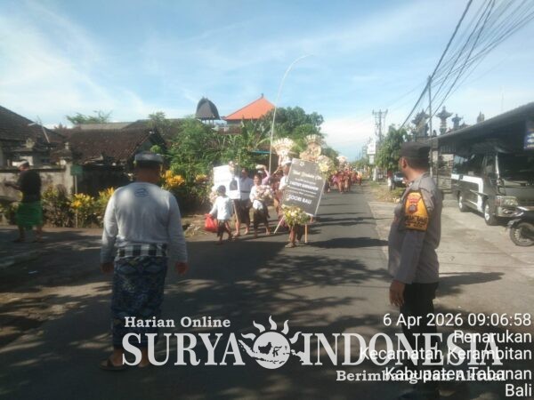 Polres Tabanan, Surya Indonesia.net – Polsek Kerambitan, Selasa 07 April 2026; Bhabinkamtibmas Desa Penarukan Aiptu I Putu Widiarsana laksanakan pengamankan kegiatan Upacara Pitra Yadnya (Ngaben) bertempat di Banjar Penarukan Kelod, Desa Penarukan, Kecamatan Kerambitan.