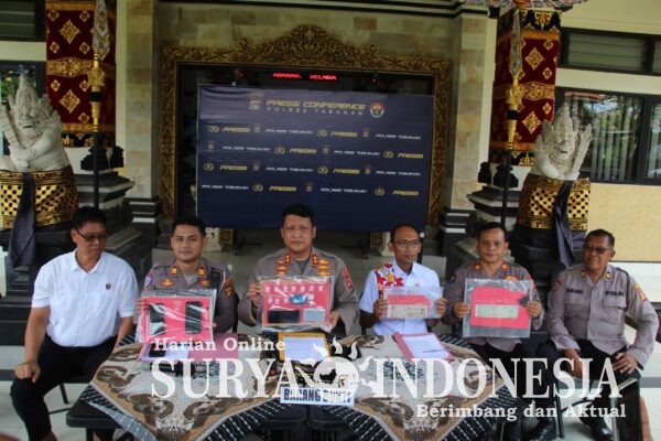 Polda Bali, Surya Indonesia.net – Polres Tabanan – Humas Tabanan.Polres Tabanan menggelar press conference pengungkapan kasus narkoba dan hasil pelaksanaan Operasi Ketupat Agung 2026 yang berlangsung di Lobby Polres Tabanan, Selasa (7/4/2026). Kegiatan tersebut dipimpin langsung oleh Kapolres Tabanan, AKBP I Putu Bayu Pati, serta dihadiri para pejabat utama Polres Tabanan dan rekan media. Dalam kesempatan tersebut, Kapolres juga menyampaikan ucapan Selamat Hari Raya Idul Fitri 1447 H dan Hari Raya Nyepi Caka 1948 kepada masyarakat Kabupaten Tabanan.