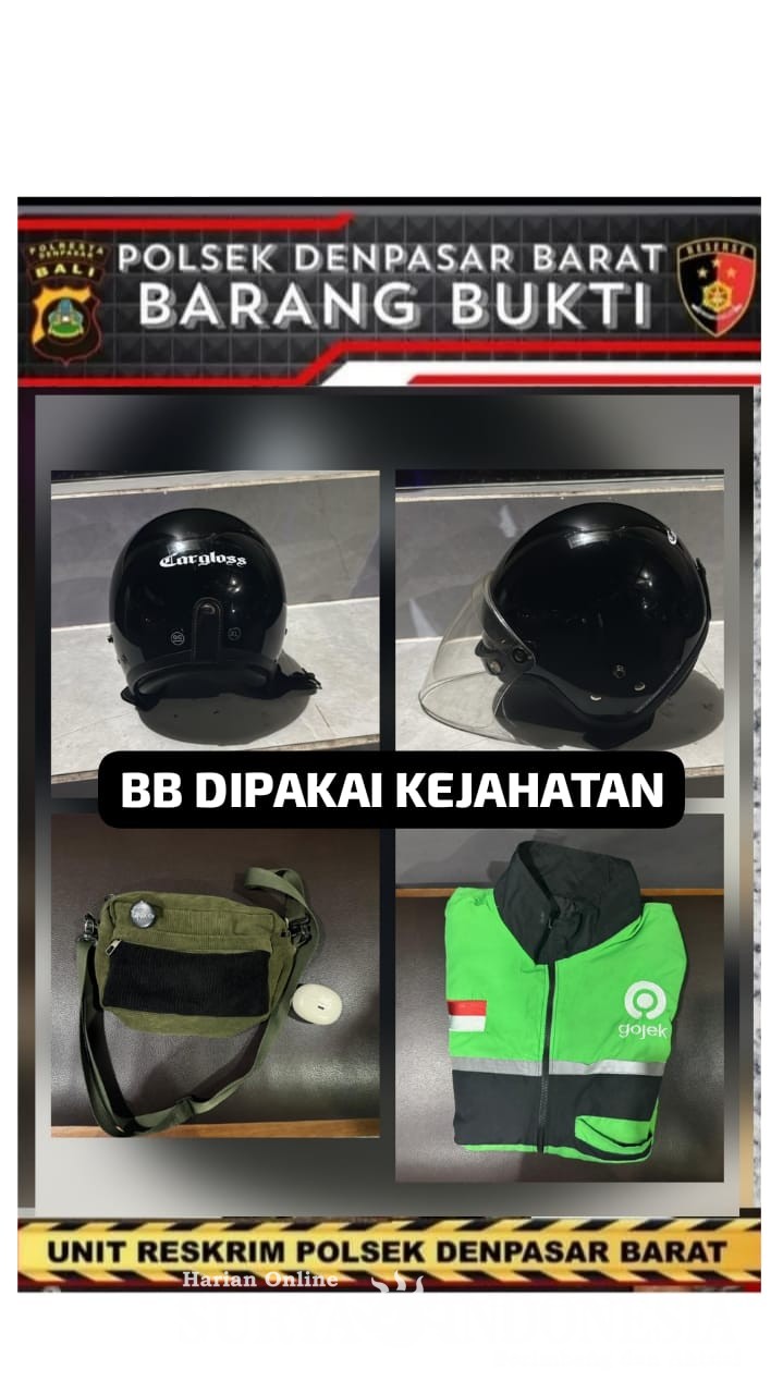 Selain mengamankan pelaku, polisi turut menyita sejumlah barang bukti, di antaranya satu unit handphone milik korban, sepeda motor, jaket rompi ojek online, helm, serta pakaian yang digunakan saat kejadian.