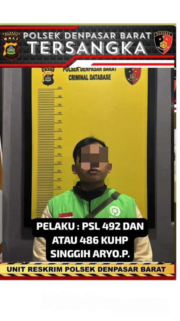 Denpasar, Surya Indonesia.net – Unit Reskrim Polsek Denpasar Barat (Denbar) berhasil mengungkap tindak pidana penipuan dan penggelapan sebagaimana dimaksud dalam Pasal 492 dan/atau Pasal 486 KUHP. Pengungkapan ini merupakan tindak lanjut dari laporan masyarakat yang tercatat dalam LP-B/35/IV/2026/SPKT/Polsek Denbar/Polresta Denpasar/Polda Bali, tertanggal 4 April 2026.