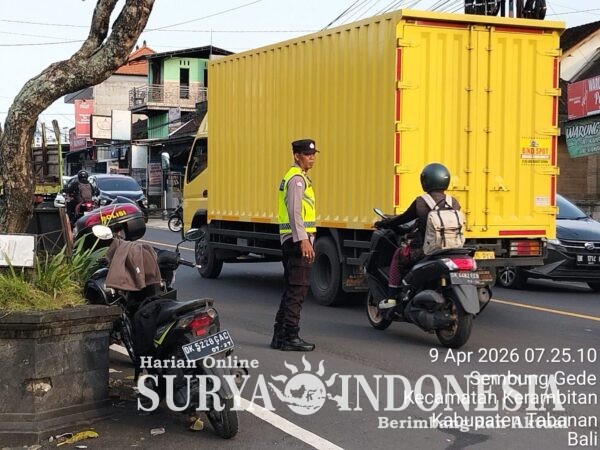 Polres Tabanan, Surya Indonesia.net – Polsek Kerambitan, Kamis 09 April 2026; Anggota Polsek Kerambitan laksanakan kegiatan Pengaturan Lalu Lintas di Jalur Denpasar – Gilimanuk dan Pos-Pos yang telah ditentukan di Daerah Hukum Polsek Kerambitan.