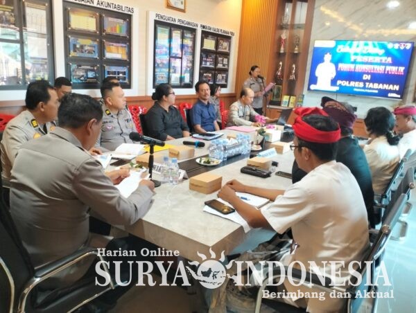 Polda Bali, Surya Indonesia.net – Polres Tabanan – Humas Tabanan. Polres Tabanan menggelar kegiatan Sharing Session Konsultasi Pelayanan Publik (Forum Konsultasi Publik/FPK) pada Kamis, 9 April 2026, bertempat di Posko Zona Integritas Polres Tabanan. Kegiatan yang berlangsung mulai pukul 09.30 hingga 10.35 Wita ini dipimpin oleh Wakapolres Tabanan Kompol I Gede Made Surya Atmaja, S.Sos., M.H., serta dihadiri oleh pejabat internal Polres Tabanan, unsur pemerintah daerah, tokoh masyarakat, akademisi, dan perwakilan organisasi masyarakat.