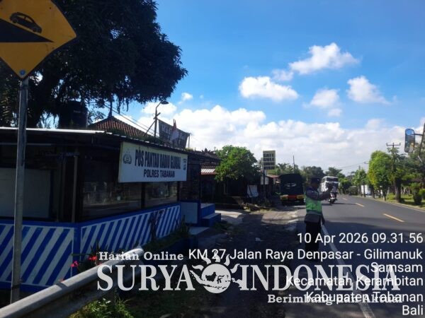 Polres Tabanan, Surya Indonesia.net – Polsek Kerambitan, Sabtu 10 April 2026; Anggota Polsek Kerambitan laksanakan kegiatan Strong Point Khuss Radio Global Pengaturan Lalu Lintas di Jalur Denpasar – Gilimanuk tepatnya di Pos Radio Global yang termasuk Daerah Hukum Polsek Kerambitan.