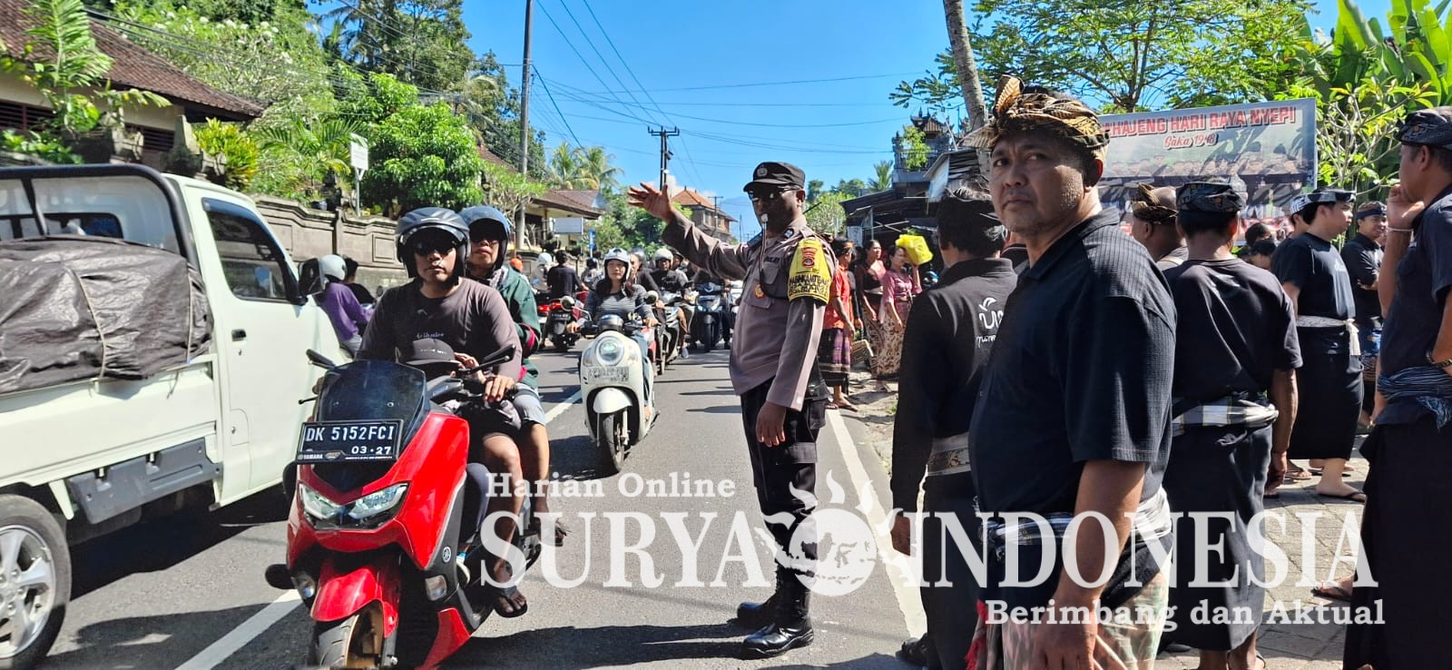 “Pengaturan lalin dan pengamanan dilaksanakan bersinergi dengan pecalang guna memastikan seluruh rangkaian upacara ngaben dapat berjalan tertib, aman dan lancar.