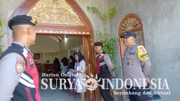 Bangli, Surya Indonesia.net – Mengusung tema “Menjadi Gereja Pembawa Damai”, personel Polres Bangli bersama Polsek Bangli melaksanakan pengamanan kegiatan Ibadah Minggu di Gereja Marga Rahayu Bangli pada Minggu pagi (12/4/2026).