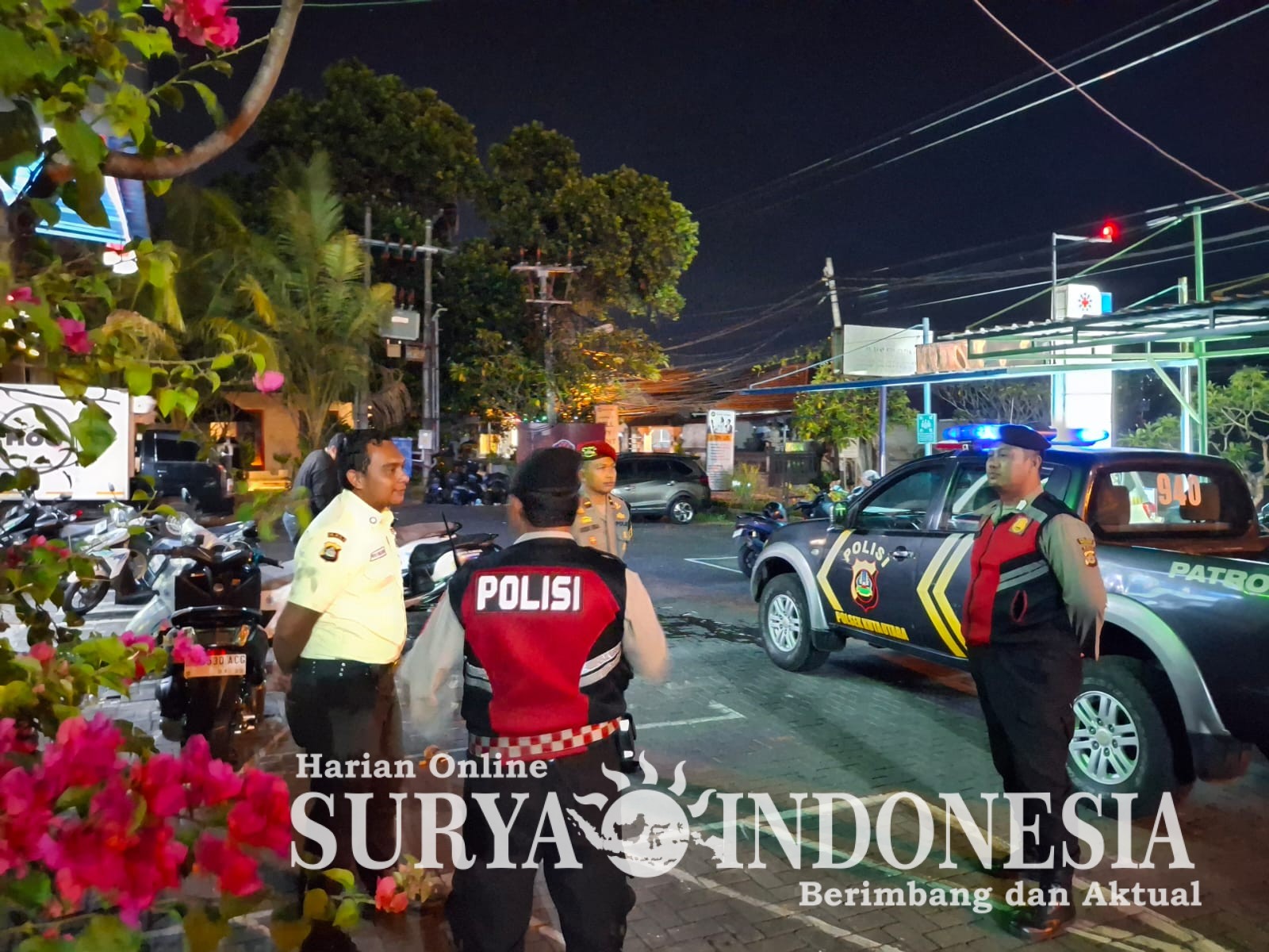 Kegiatan Patroli pada jam-jam rawan terjadinya aksi kriminal di pimpin Perwira Pengawas (Pawas) Ipda I Gede Eka Pratama menyusuri jalur utama jalan raya Canggu. Minggu (12/4/2026) pukul 02.00 Wita