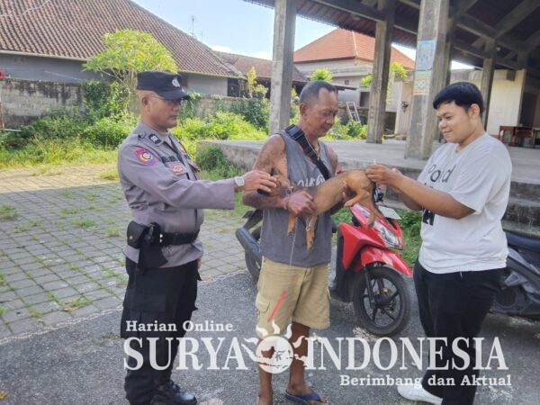 BLAHBATUH, Surya Indonesia.net – GIANYAR, sebagai bentuk dukungan terhadap program pemerintah dalam pencegahan penyebaran penyakit rabies, Bhabinkamtibmas Desa Bona Aiptu I Made Ata Arnawa melaksanakan atensi kegiatan vaksinasi rabies di Banjar Prajamukti dan Banjar Kertiyasa, Desa Bona, Kecamatan Blahbatuh, pada Senin (13/4/2026). Kegiatan ini menyasar hewan peliharaan masyarakat seperti anjing, kucing, dan kera guna menciptakan lingkungan yang sehat dan aman.