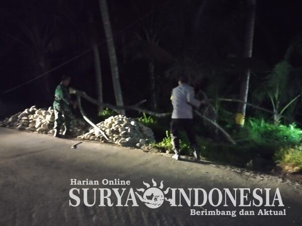 BLAHBATUH, Surya Indonesia.net – GIANYAR, Kepolisian Sektor Blahbatuh melalui Bhabinkamtibmas Desa Saba Aipda I Nyoman Mara Arta bergerak cepat bersama instansi terkait dan masyarakat dalam penanganan pohon tumbang yang terjadi di Jalan Raya Pinda menuju Sukawati, Banjar Pinda, Desa Saba, Kecamatan Blahbatuh, pada Minggu malam (12/4/2026). Kegiatan ini merupakan bentuk respons cepat Polri dalam menjaga keselamatan dan kenyamanan masyarakat pengguna jalan.