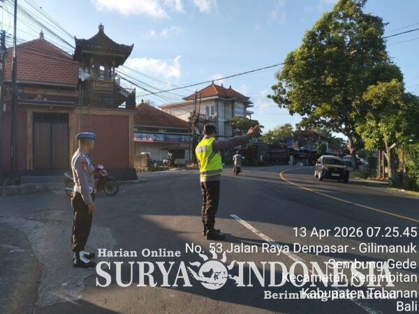 Polres Tabanan, Surya Indonesia.net – Polsek Kerambitan, Senin 13 April 2026; Anggota Polsek Kerambitan laksanakan kegiatan Pengaturan Lalu Lintas di Jalur Denpasar – Gilimanuk dan Pos-Pos yang telah ditentukan di Daerah Hukum Polsek Kerambitan.