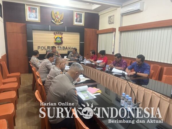 Polda Bali, Surya Indonesia.net – Polres Tabanan – Humas Tabanan. Kapolres Tabanan AKBP I Putu Bayu Pati, S.I.K., M.H., menerima audiensi dari Dinas Pekerjaan Umum Kabupaten Tabanan pada Selasa (14/4/2026) di Rupatama Polres Tabanan. Pertemuan ini membahas rencana pembangunan rumah dinas Kapolres yang dirancang lebih modern, fungsional, dan memperhatikan aspek teknis jangka panjang. Kegiatan tersebut turut dihadiri oleh jajaran pejabat utama Polres serta perwakilan Dinas PU dan rekanan perencana.