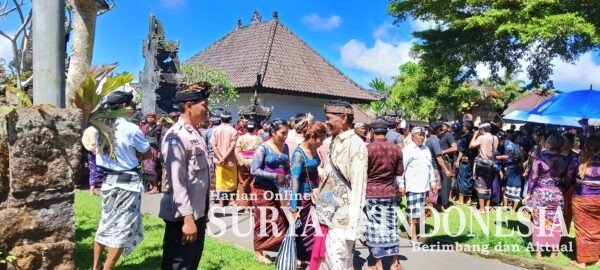 Surya Indonesia.net – Dalam rangka menjaga kelancaran serta keamanan kegiatan adat masyarakat, Bhabinkamtibmas Desa Pengotan menunjukkan peran aktifnya dalam pengamanan tradisi Mekandal (kawin massal) yang menjadi warisan budaya di Desa Pengotan, Kecamatan Bangli.
