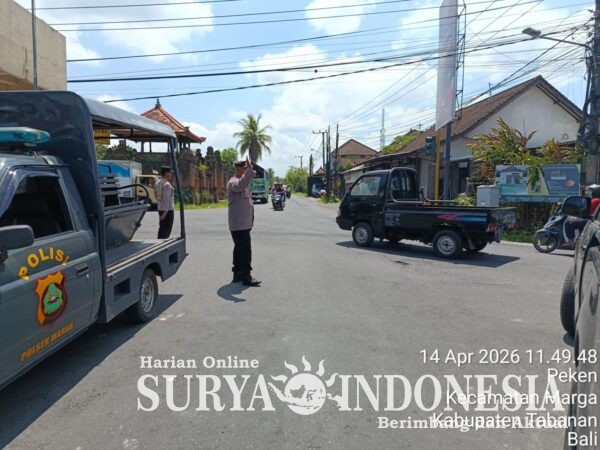 Polres Tabanan, Surya Indonesia.net – Polsek MargaGuna mencegah kemacetan dan terjadinya gangguan kamtibmas Kapolsek marga menurunkan anggota untuk melaksanakan strong point simpang belayu jalan wisnu marga, Selasa, (14/04/26) guna berikan rasa aman dan nyaman kepada pengendara bermotor dan warga masyarakat.